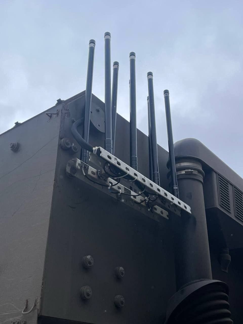 Новый комплекс РЭБ «Сания» отличается закрытой конфигурацией размещения модулей частотного анализа, а также СВЧ-генератора и модулирующего устройства. Антенны со всенаправленными диаграммами направленности размещены на вынесенном за тыльный бронелист кабины многоточечном узле крепления.