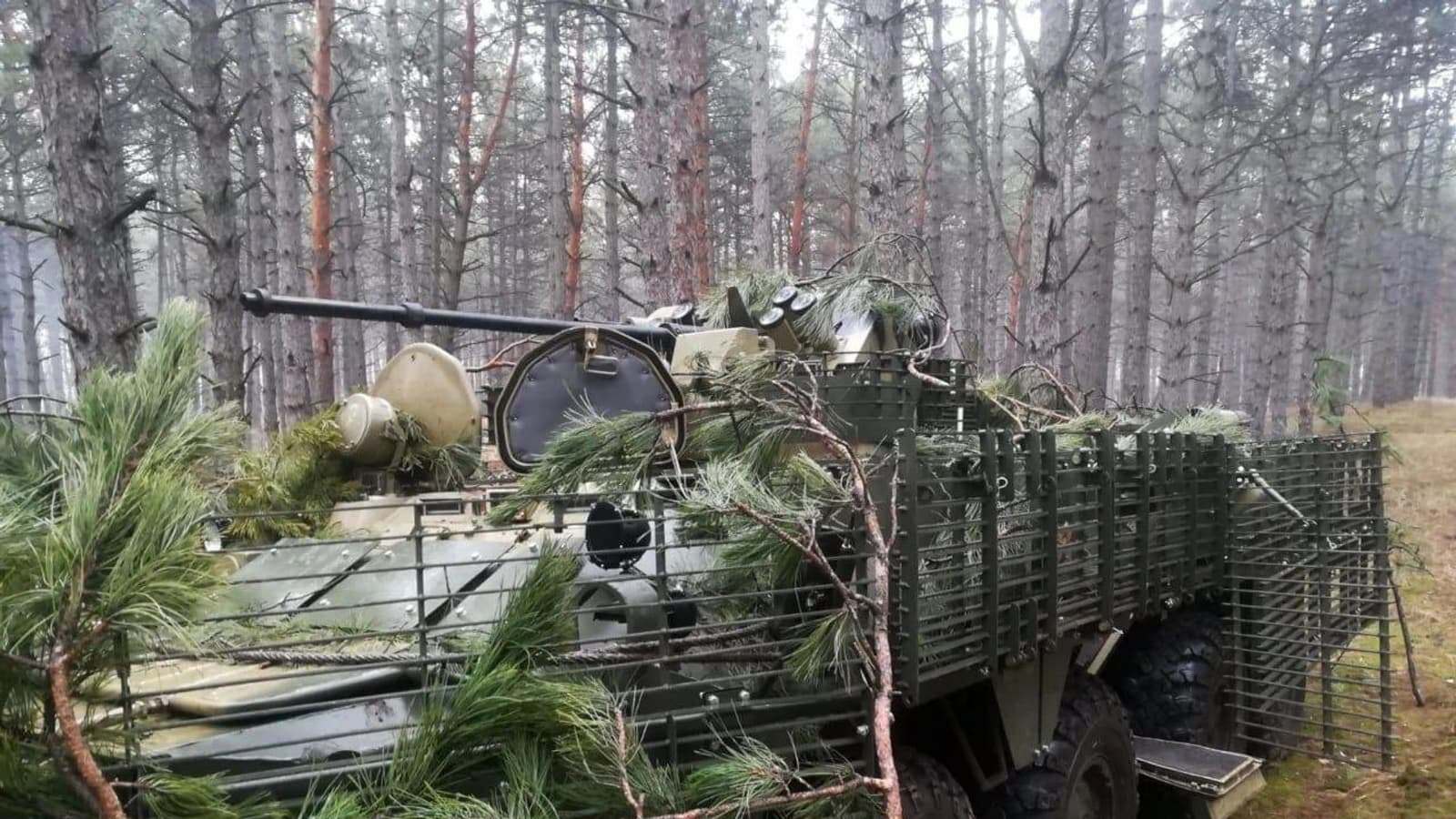 По его словам, БТР-82АТ получил комплект комбинированных решетчатых экранов.