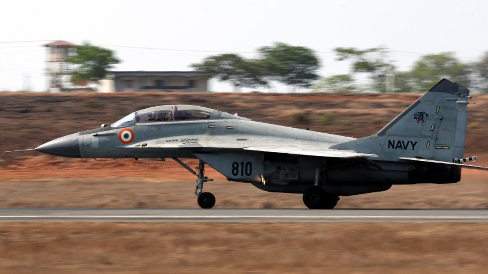 Советский палубный многоцелевой истребитель четвёртого поколения МиГ-29К ВМС Индии оснастили белорусским бортовым комплексом обороны (БКО) «Талисман». Снимок самолёта с системой защиты от ракет класса «воздух-воздух» и «земля-воздух» сделали на выставке Aero India 2025.