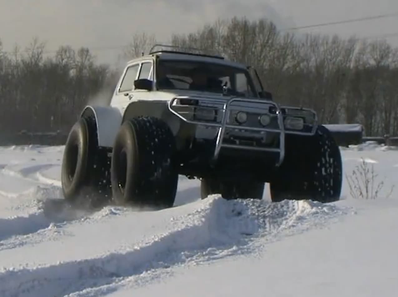 Максимальная скорость автомобиля достигает 70 км/ч, помогает её набрать двигатель ВАЗ-21213 мощностью 80 л.с. Для снегоболотохода — более, чем достойный показатель.