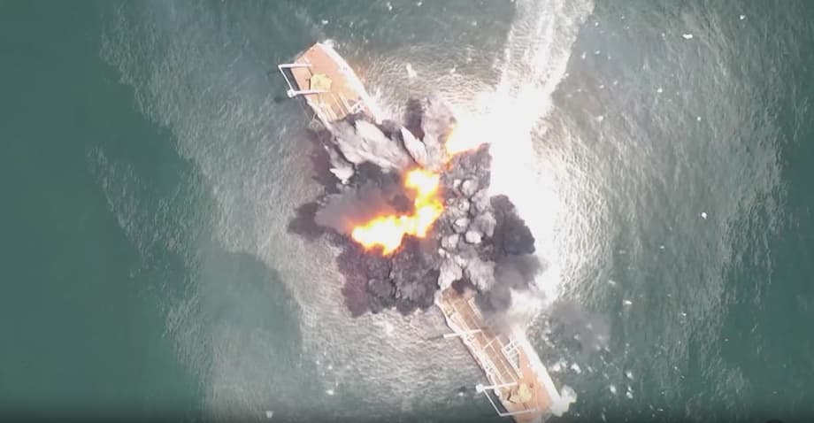 На видео безэкипажное судно летит к плавающему объекту и вскоре взрывается, уничтожая цель и устраивая большой фейерверк. Конкретная информация об этих беспилотных надводных дронах отсутствует. Тем не менее, есть основания подозревать, что русские что-то задумали.