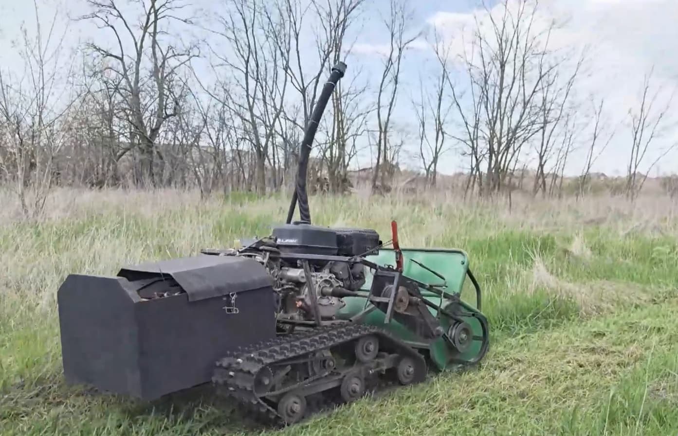 «Газонокосилка» на гусеничном ходу особенно удобна при работе на полях с высокой травой. В момент подготовки оператор находится на безопасном расстоянии — до 500 м. Иногда оборудование подрывается, тем самым помогая сапёрам найти «край минного поля», пояснил представитель гуманитарного отряда.