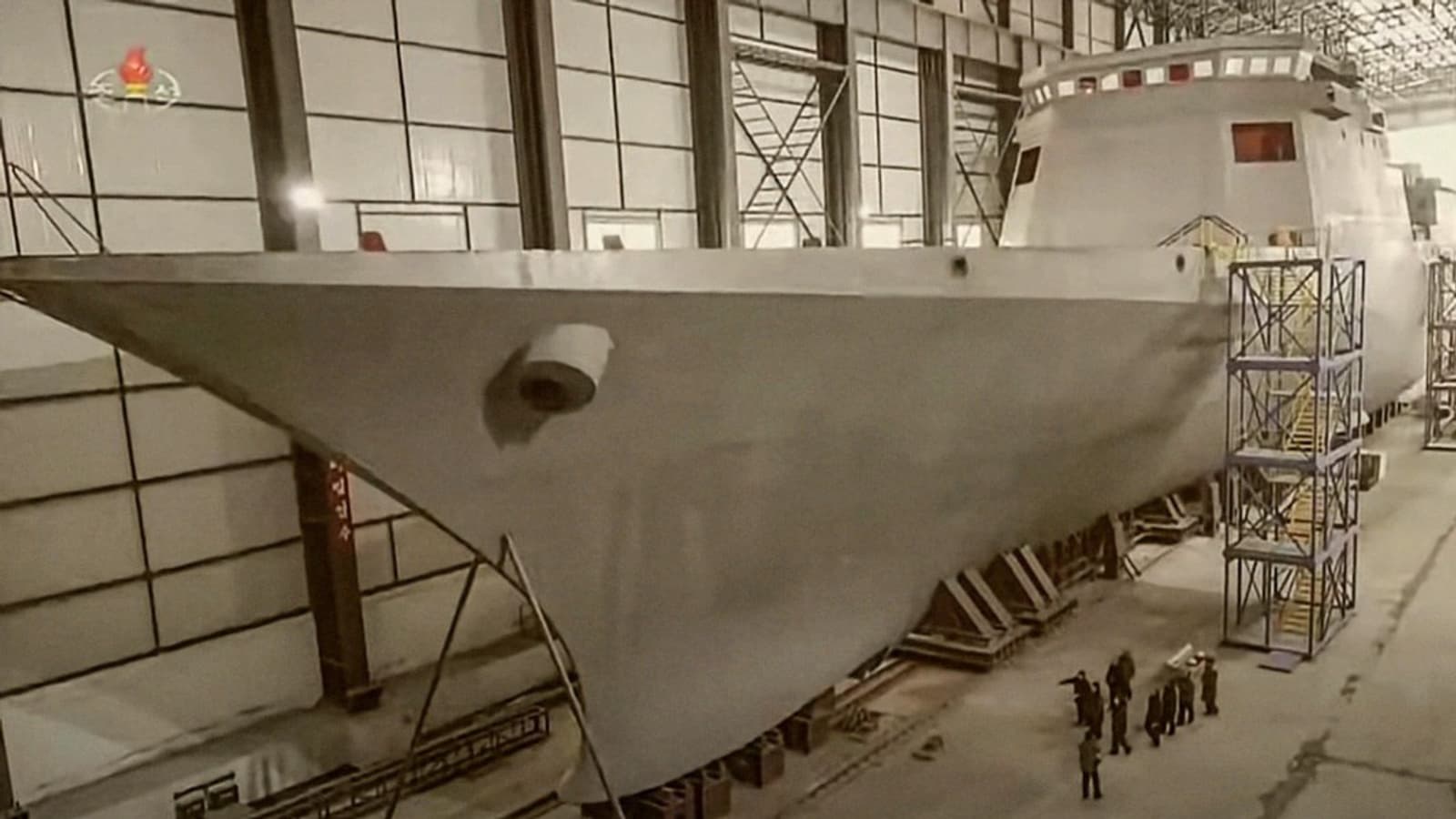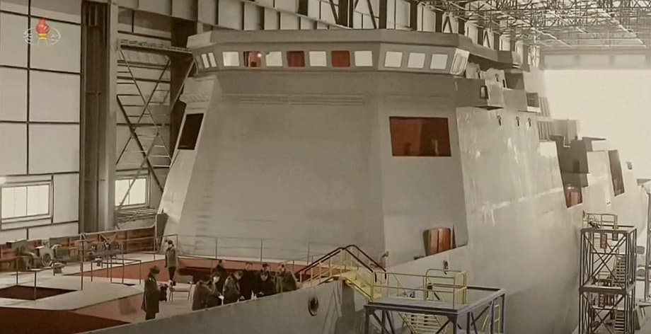 A large new type of frigate capable of launching guided missiles is under construction at a shipyard in Nampo, North Korea. North Korean leader Kim Jong-un has repeatedly visited the facility, according to the Korean Central News Agency.
