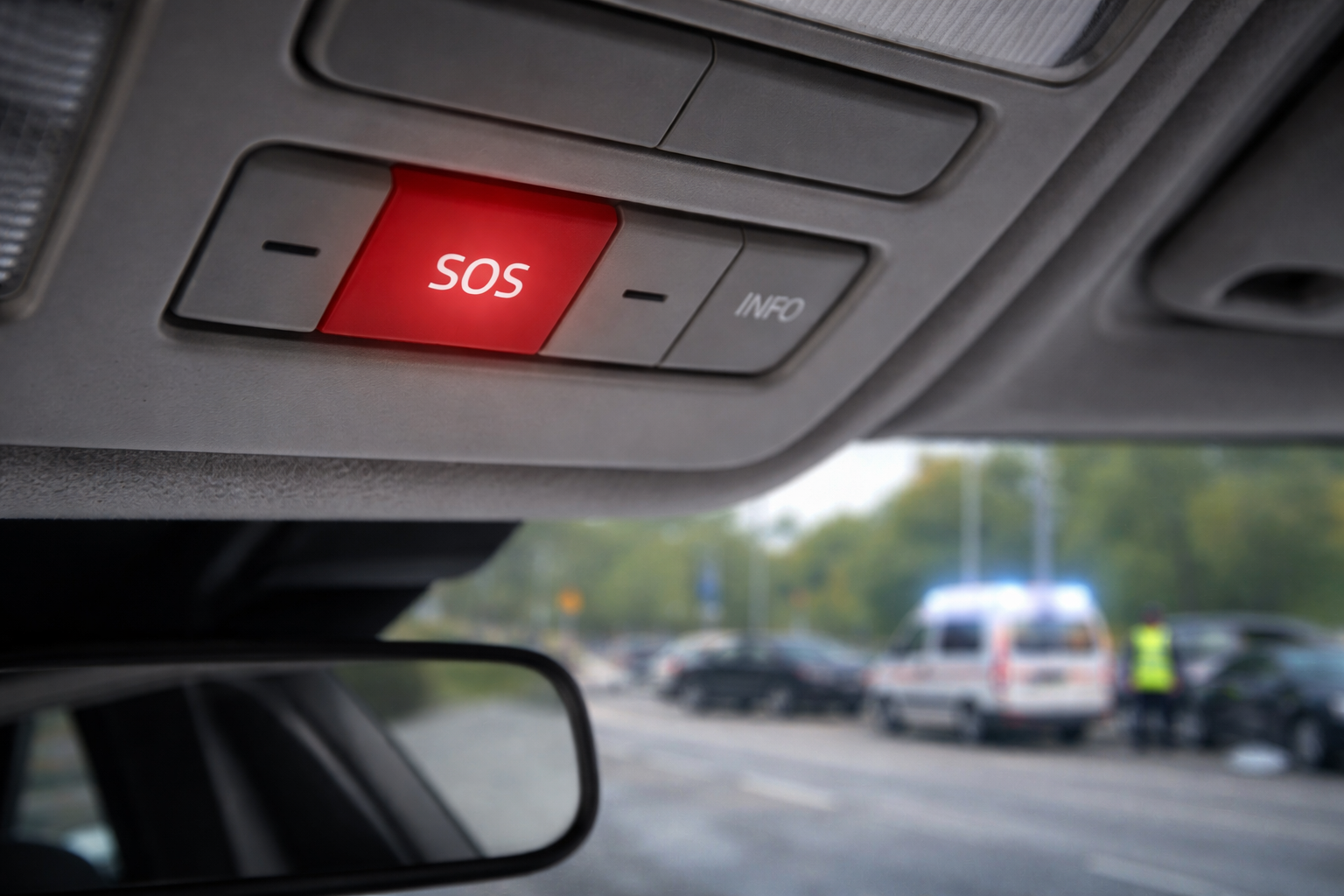 If a car is equipped with an emergency response system unit, emergency services are called automatically in the event of an accident. If necessary, assistance can also be called manually by pressing the SOS button, or ERA-GLONASS.
