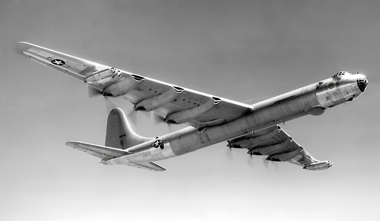 With a wingspan of 70.1 m, the Peacemaker is one of the largest bombers of its time. The missile carrier was equipped with six piston engines and could carry nuclear weapons.