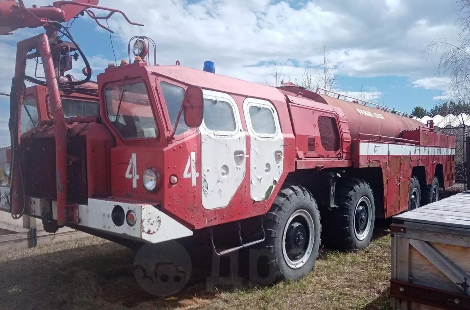 An unusual MAZ truck is being sold in Krasnoyarsk. This is an eight-wheeled fire truck MAZ-7310 with three tanks: 9.5 tons for water, as well as for foam concentrate and for powder.