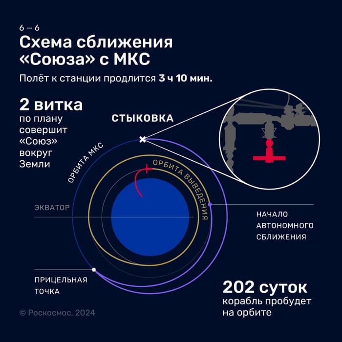 The spacecraft's entry into the target orbit, its separation from the third stage of the rocket, and the deployment of antennas and solar panels are normal! We expect docking to the Rassvet module at 22:33 Moscow time.