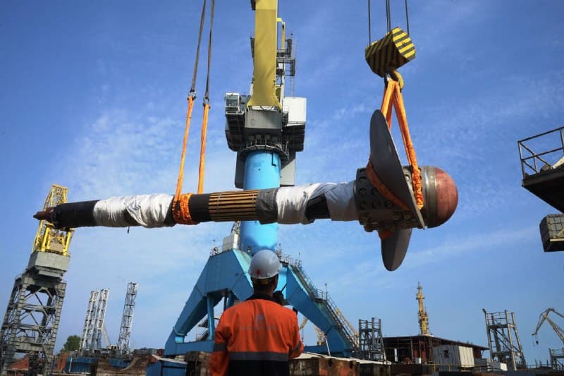 Specialists from the Baltic Shipyard of the USC have begun installing shaft lines on the icebreaker Chukotka. The propeller shaft, to which the ship's propeller is attached, was loaded onto the stern. This was reported by the press service of the shipbuilding corporation.