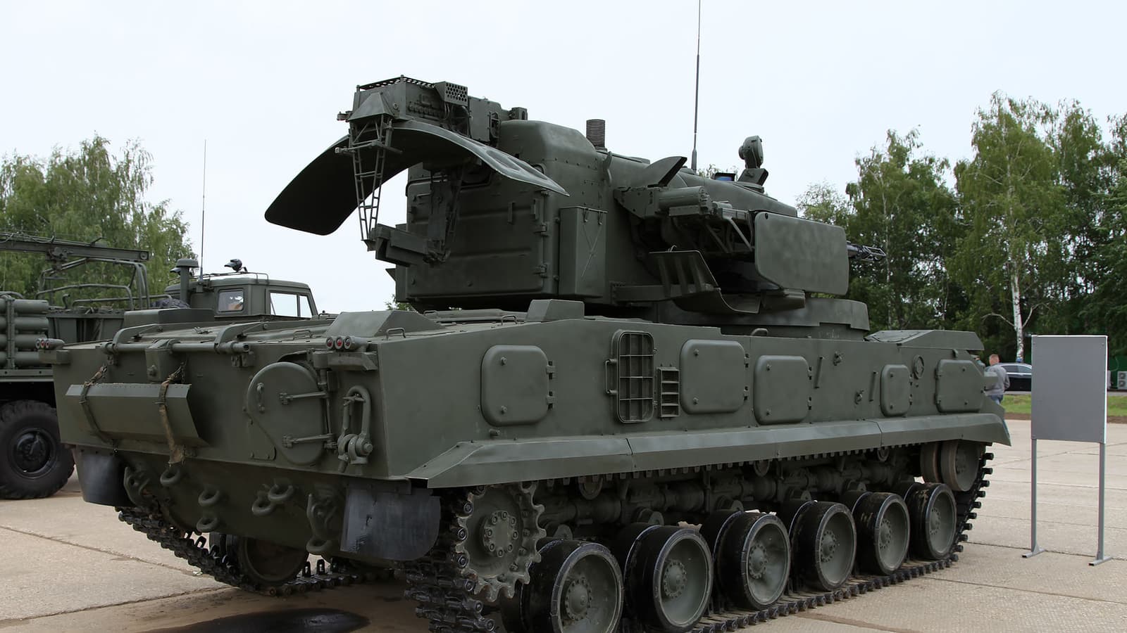 The Russian 2S6M "Tunguska-M1" anti-aircraft missile and gun system is capable of detecting aerial targets at a distance of 18 km. It is designed to provide air defense for motorized rifle and tank units, both during combat operations and on the march.