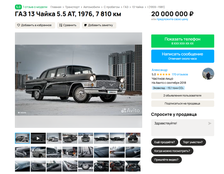 A restored Soviet GAZ-13 "Chaika" limousine with a mileage of less than eight thousand kilometers has been put up for sale in Yekaterinburg for 20 million rubles. Leonid Brezhnev, General Secretary of the CPSU Central Committee, drove a similar one.