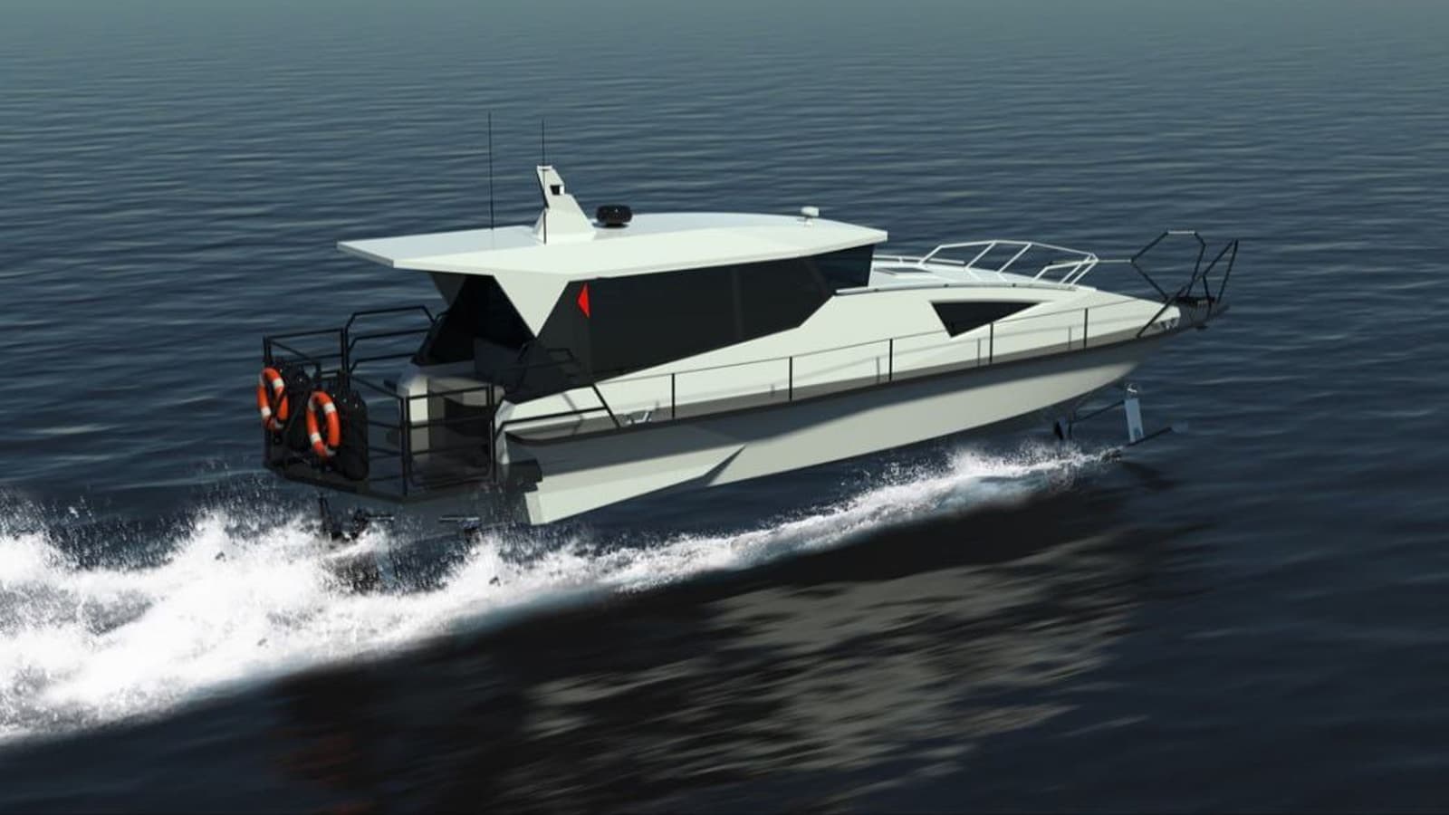The vessel can be equipped with stationary wings or a stationary stern and lifting bow wing.