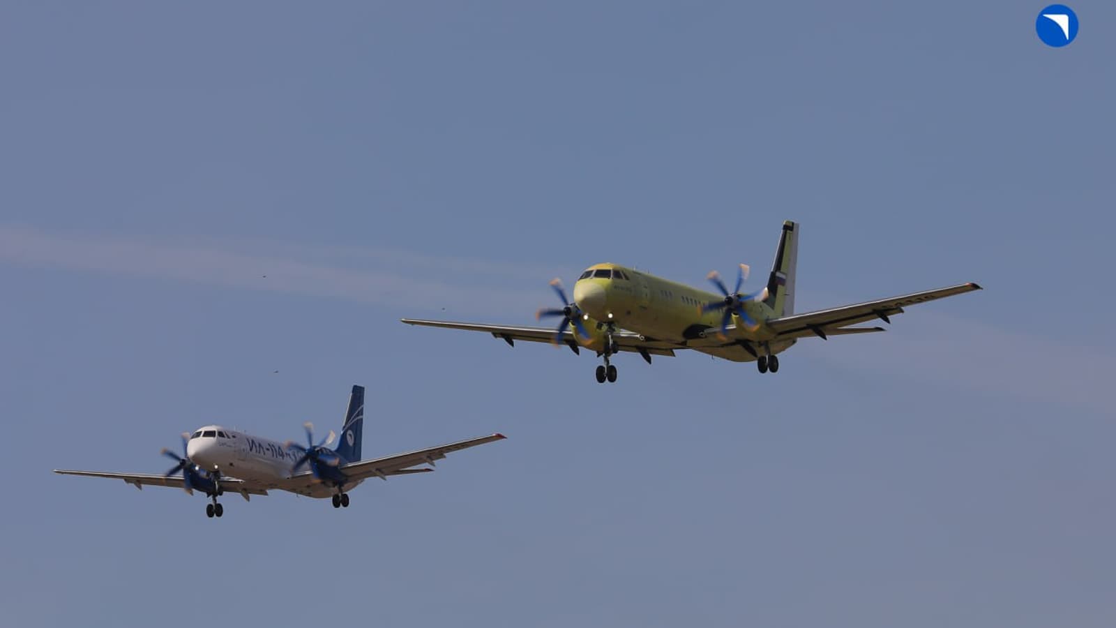 The aircraft was accompanied in the sky by the first Il-114-300 - board "0110". The flight lasted 30 minutes, all systems and equipment worked without failures. The flight program was completed in full.