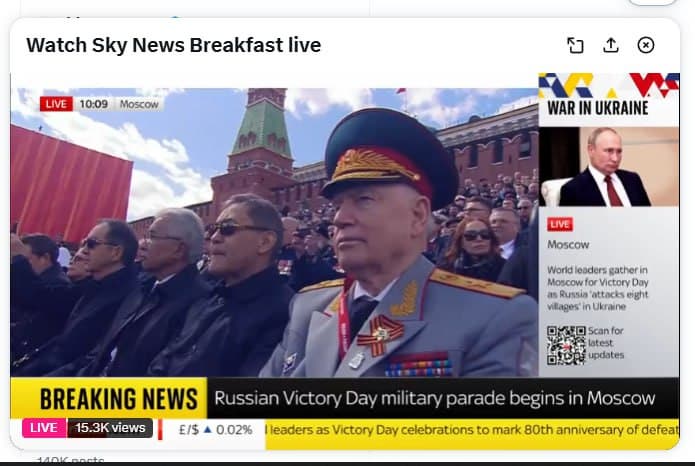 The British newspapers The Sun, The Times and The Telegraph, the German Die Welt, the Spanish TV channel RTVE are broadcasting the Victory Parade live, and the French TV channels TF1 and BFMTV are showing footage of the parade with expert commentary.