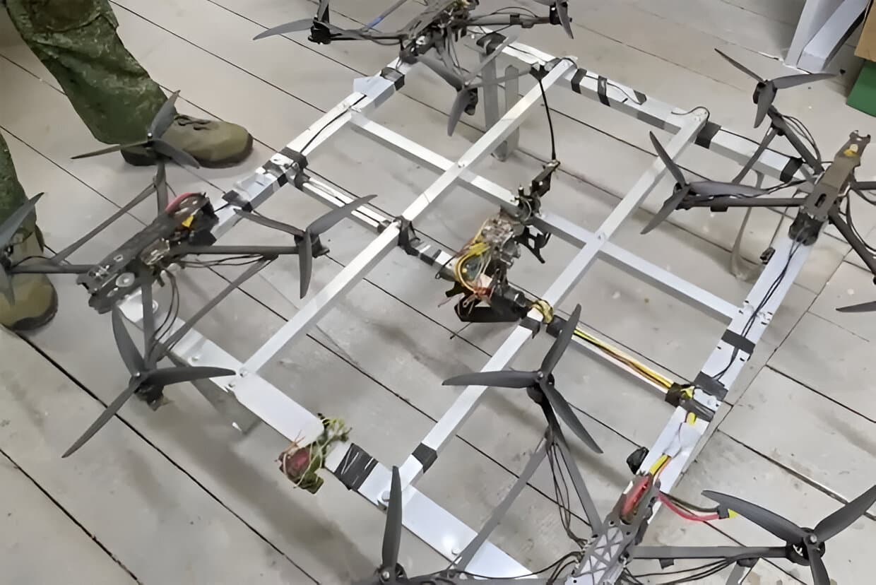 Military personnel of the field drone laboratory have developed and successfully used the heavy strike FPV drone "Vobla". The device consists of five quadcopters on a large frame.