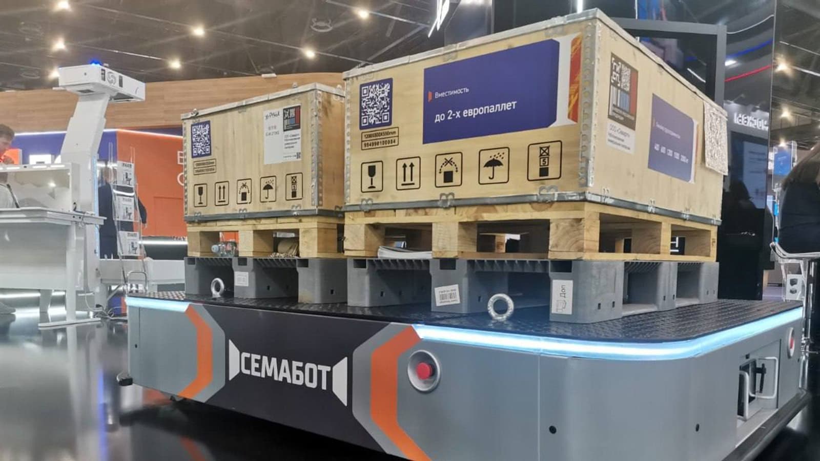 "Syomabot" is an innovative robot for transporting packaged goods (boxes, pallets, barrels and racks) with reliable transportation of goods weighing up to 2000 kg.