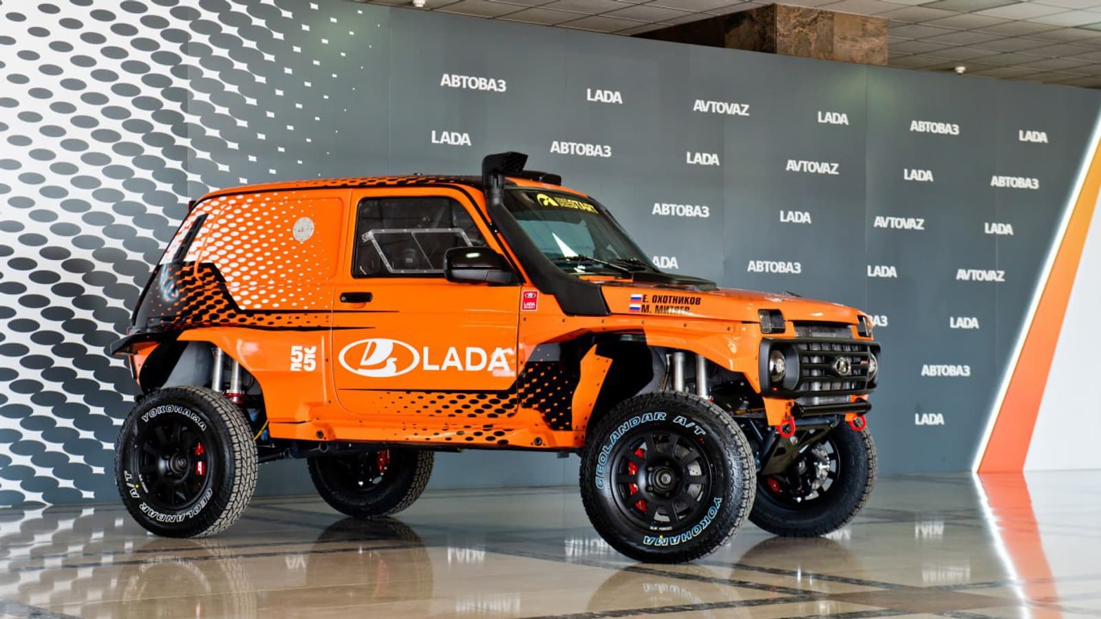 Under the hood, there is a turbocharged 1.6-liter engine with a capacity of 280 hp and a torque of 340 N·m, developed on the basis of the Lada Vesta 1.6T power unit of the "Super-Production" class. The transmission is represented by a new 6-speed sequential gearbox with a lockable center differential.