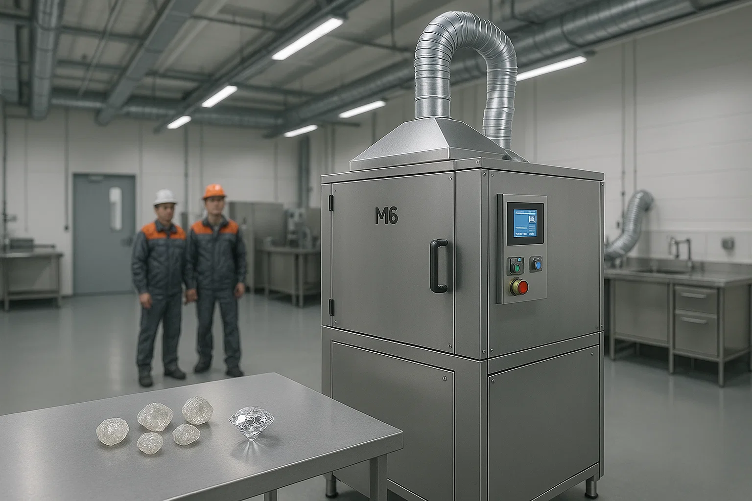 The new machines use microwave pressure technology to clean diamond-containing concentrate from impurities. The process is fully automated, eliminating the need to manually move the mixture into a sealed chamber, as was previously the case. The integrated ventilation system ensures the removal of harmful vapors, creating safe conditions for workers. According to workshop foreman Lidia Gerasimova, the equipment allows for deep cleaning of diamonds at the final stage, giving the stones a characteristic shine.