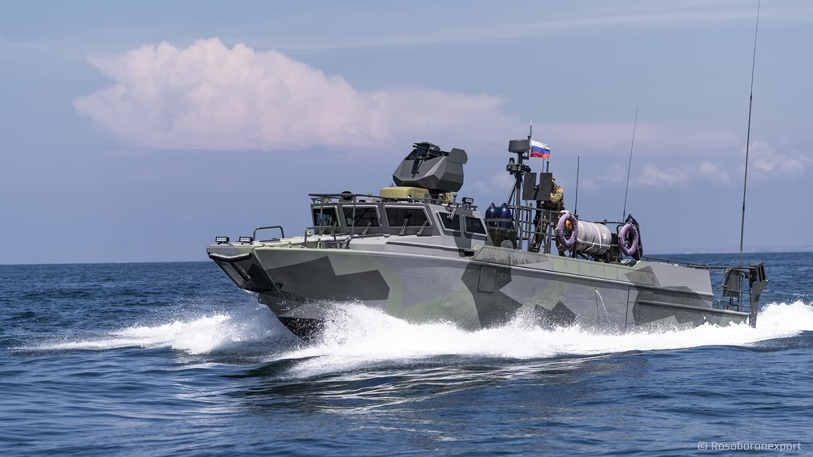 In terms of capabilities, the boat is close to combat models and is able to perform their tasks if necessary, and can carry autonomous and remotely controlled underwater vehicles. There is also a combat firearm module and a platform for launching drones on board.