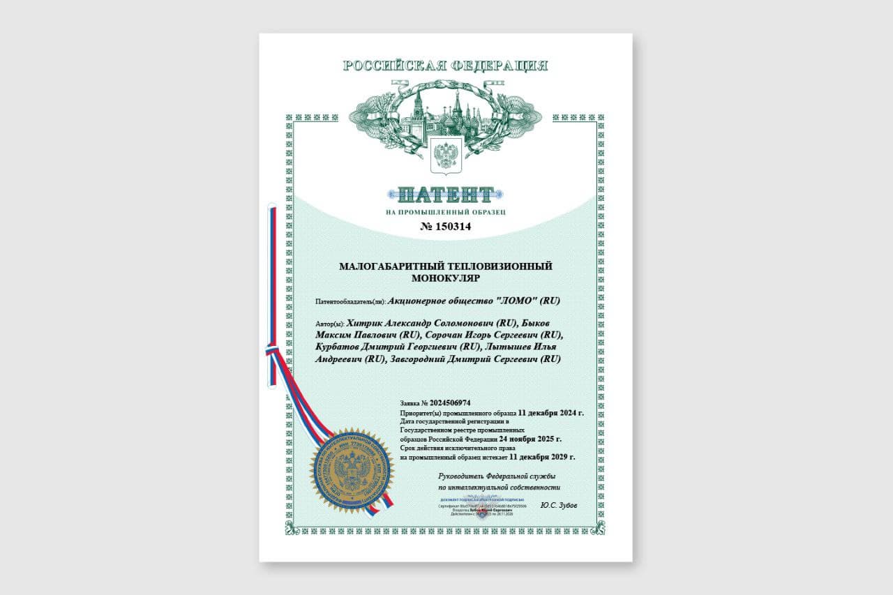 LOMO received a patent for an industrial design of a thermal imaging monocular.