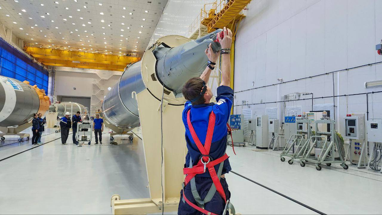 Roscosmos specialists have begun assembling the "Soyuz-2.1b" launch vehicle at the Vostochny Cosmodrome. In the workshop, the side boosters of the first stage are being docked with the central booster of the second stage, forming the so-called "package" of the rocket.
