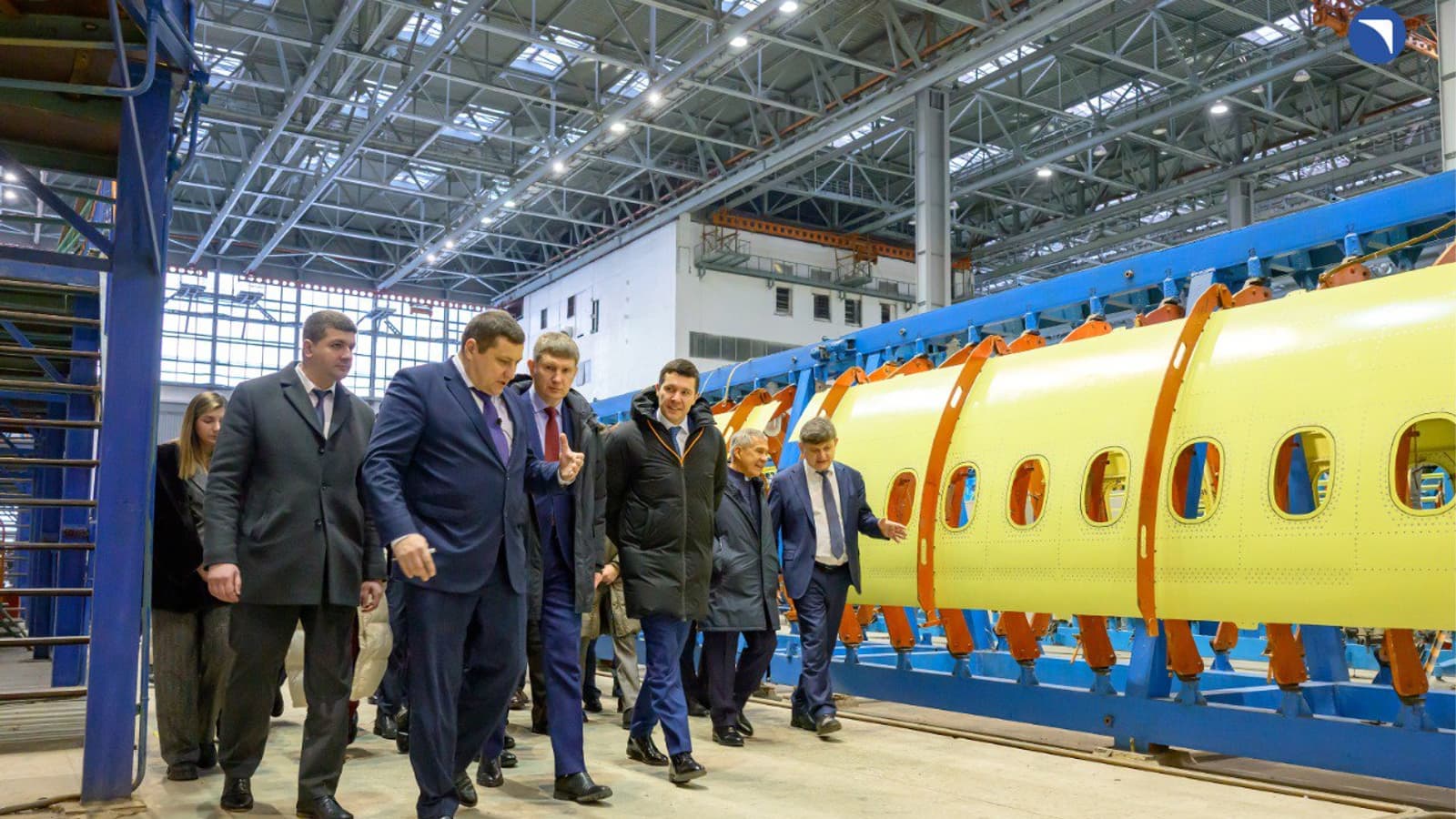 The delegation inspected the Tu-214 aggregate assembly shops, the central kitting warehouse, the mechanical processing and preform-stamping production shops, where new high-performance equipment is being installed, as well as new warehouses of the modern logistics center.