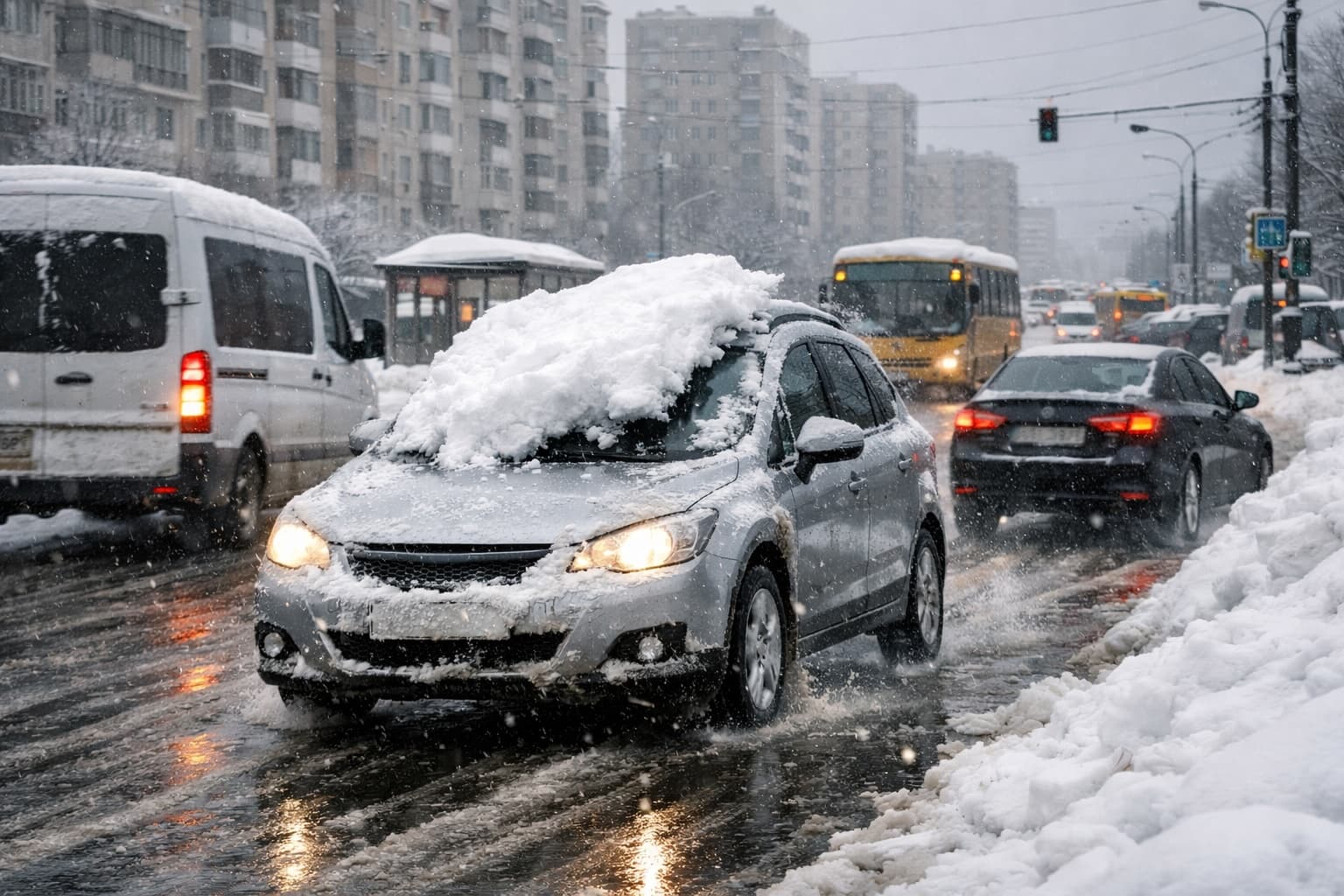 The main risk for the driver is related to reduced visibility. Snow on the windshield and side windows obstructs the view, and a snow "cap" on the roof, during sudden braking or maneuvering, can slide onto the windshield and completely block visibility. This situation sharply increases the likelihood of a traffic accident, especially in urban traffic or on a slippery road.