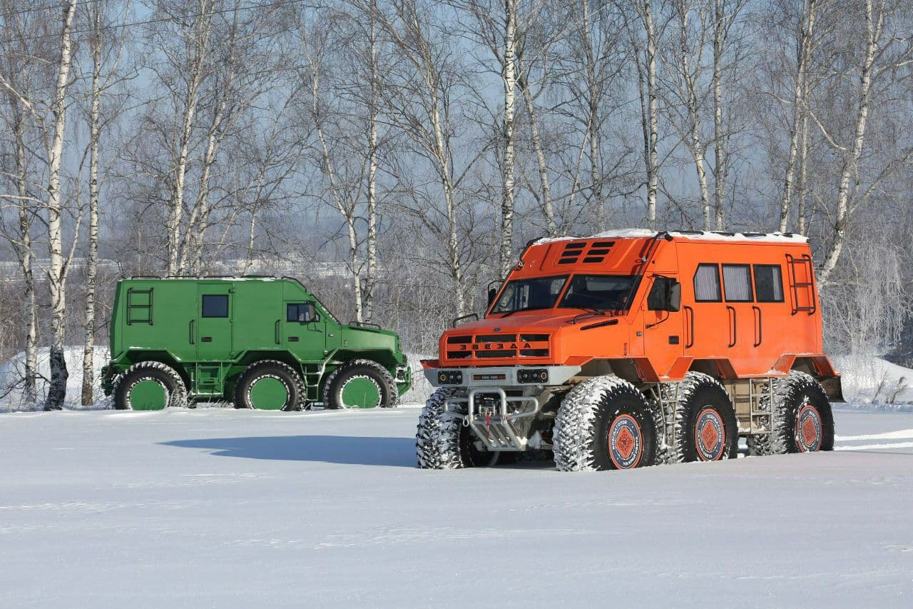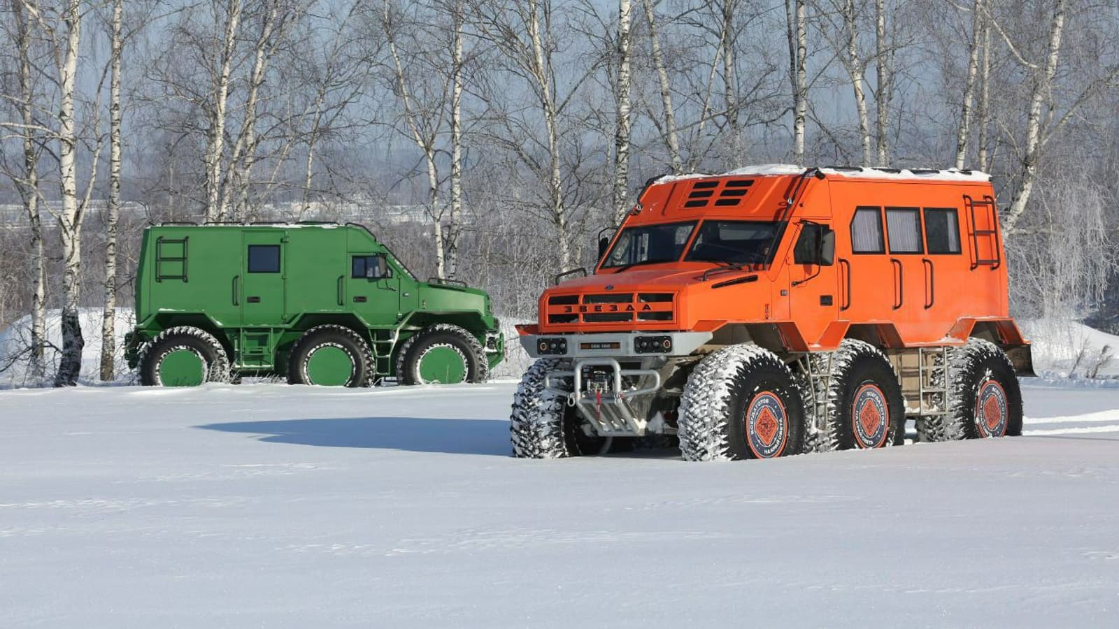 The tests included checking the cross-country ability in loose snow cover more than a meter thick, overcoming snowy obstacles, the reliability of starting, heating and operating units in long-term operation in the cold, as well as optimizing driving modes and tire pressure to maintain maximum speed with high cross-country ability.