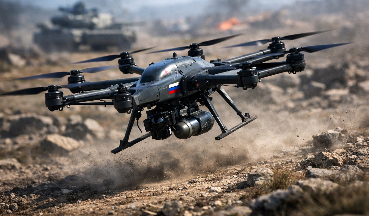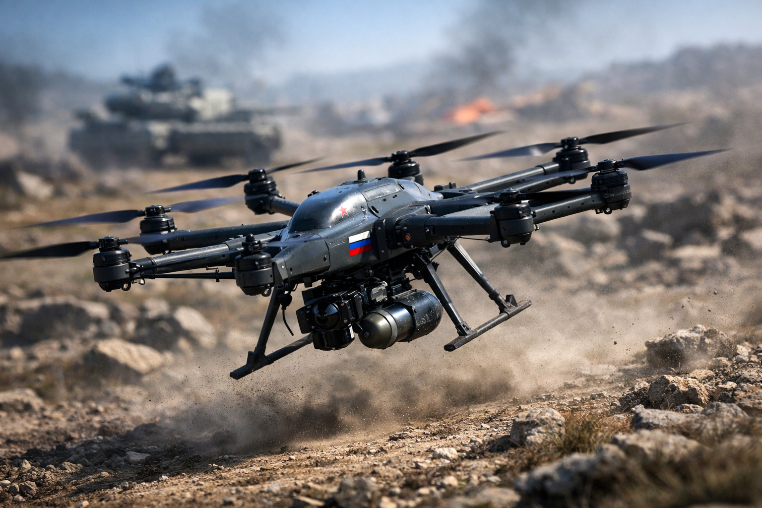 Eight main rotors provide the device with a key tactical advantage over quadcopters: if one propeller is lost, the quadcopter falls with a probability of 100%, while the octocopter retains the ability to fly. According to Bratenkov, this is what determines the reliability and combat effectiveness of the machine.