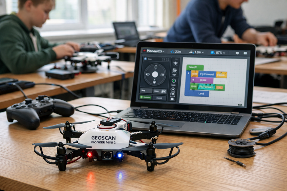 Geoscan has introduced PioneerOS, a specialized operating system for educational drones. Source — the company's press service. The OS comes with the Geoscan Pioneer Mini 2 copter and is available for the Geoscan Pioneer with the installation of an additional module. PioneerOS enables the drone to operate through functional blocks, including flight control, programming, and data analysis. The main feature of the system is on-board computing, without accessing cloud services, which increases the stability and security of operation.