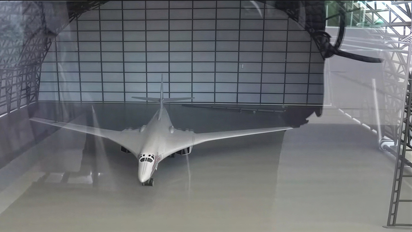 Model of Tu-160 in a protective hangar