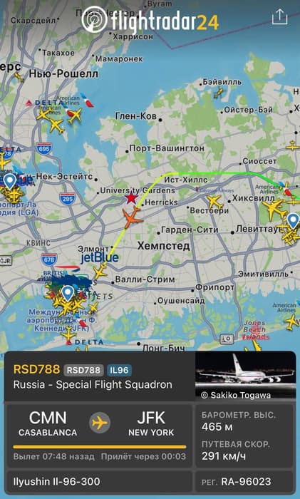 On the evening of March 25, an Il-96 long-range wide-body aircraft landed at John F. Kennedy Airport in New York. The aircraft with tail number RA-96023 belongs to the special flight detachment "Russia."
