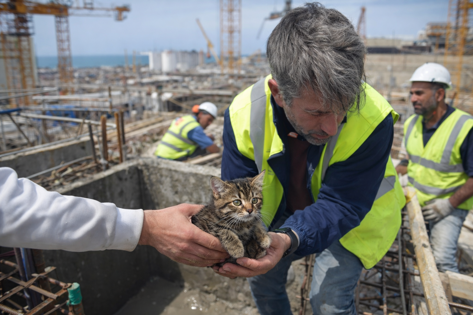 At the construction site of the "Akkuyu" nuclear power plant in Turkey, work was proceeding as usual until workers heard a plaintive meow. It turned out that a kitten was stuck at a depth of about seven meters. To save it, the pouring of concrete was immediately stopped.