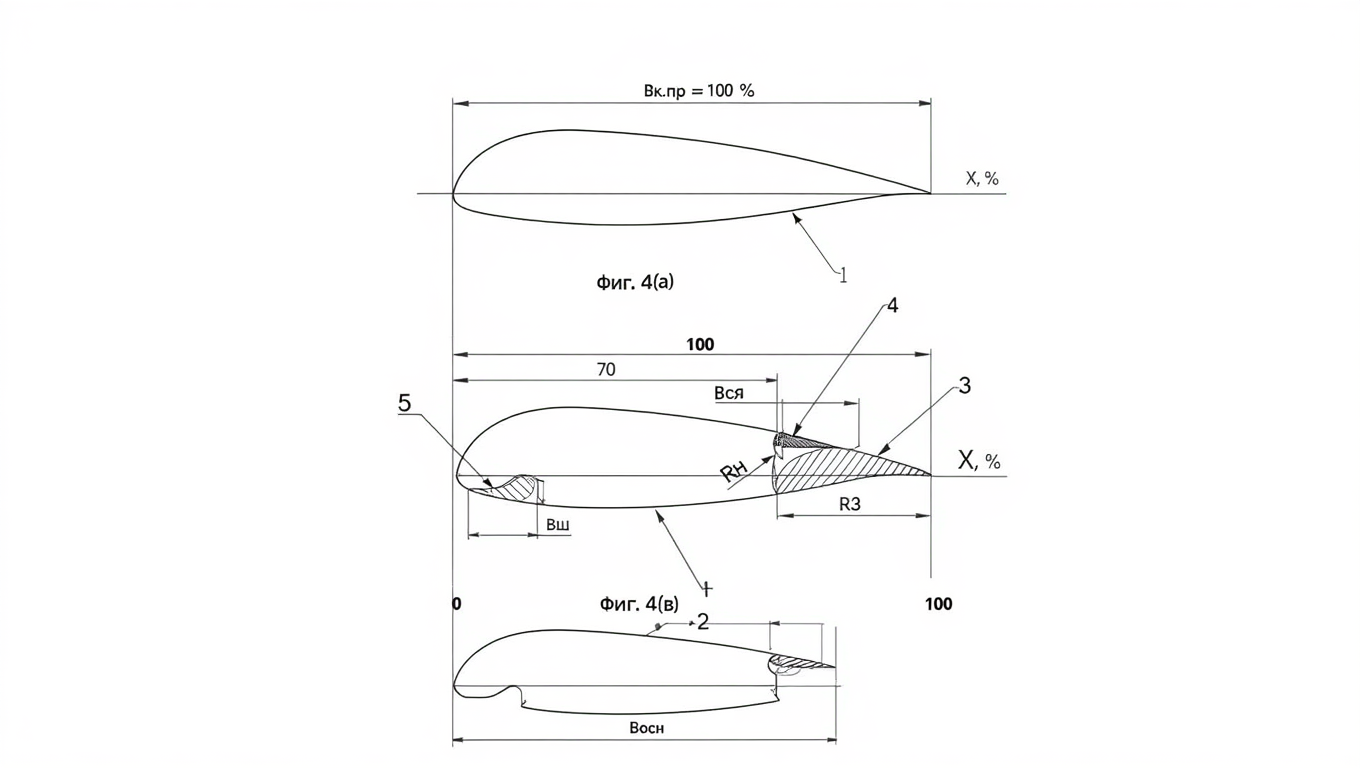 Technically, the solution relies on the precise geometry of the elements. The profile parameters are specified as a percentage of the chord, and the flap deflection angles reach 50°, the Krueger flap - up to 170°.