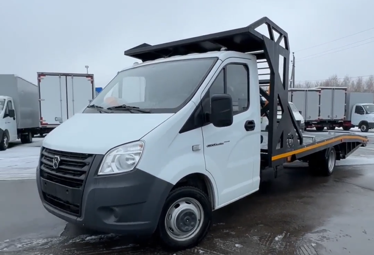 The company "Luidor" has developed a specialized tow truck based on Gazelle Next, designed for transporting buggies and ATVs. The main feature of the car is the "ramp" design above the cab, which allows you to transport two cars at the same time: one on the upper platform, the second - below.