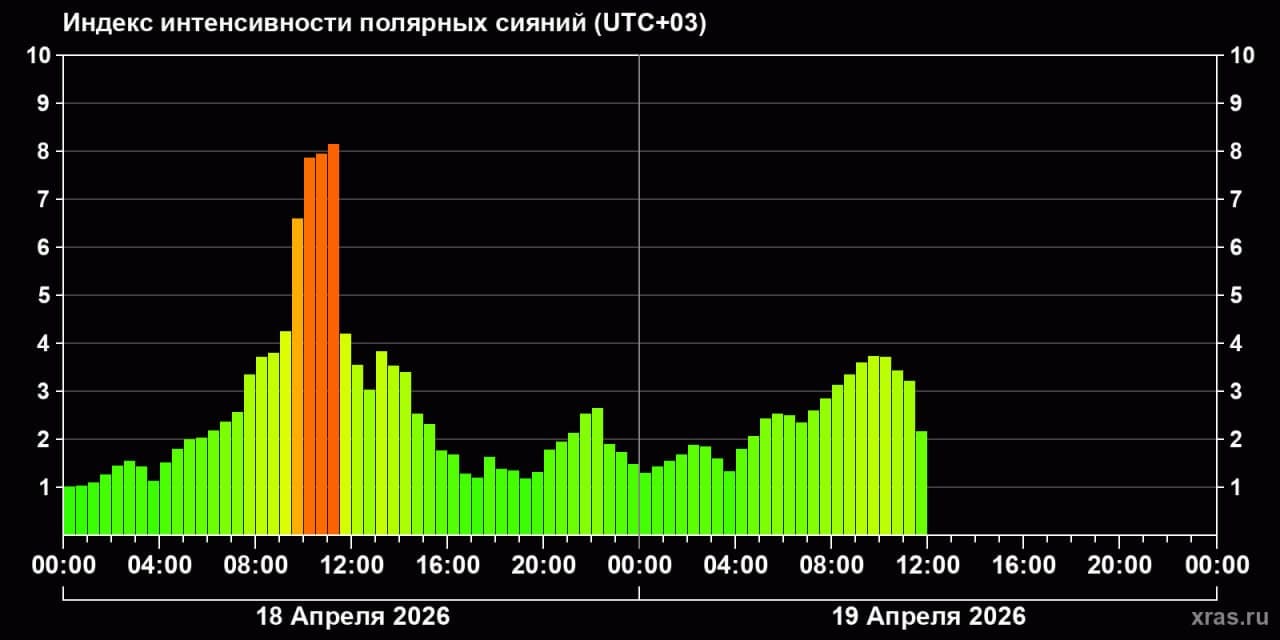 At the same time, the probability of a new intensification remains tonight — in this case, the conditions for observing auroras may be more favorable.