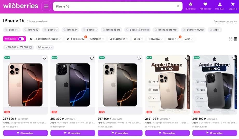 El marketplace Wildberries ha comenzado la venta de las novedades de Apple, incluyendo el iPhone 16, en el territorio de Rusia. La entrega de los primeros pedidos está prevista para el 21 de septiembre.