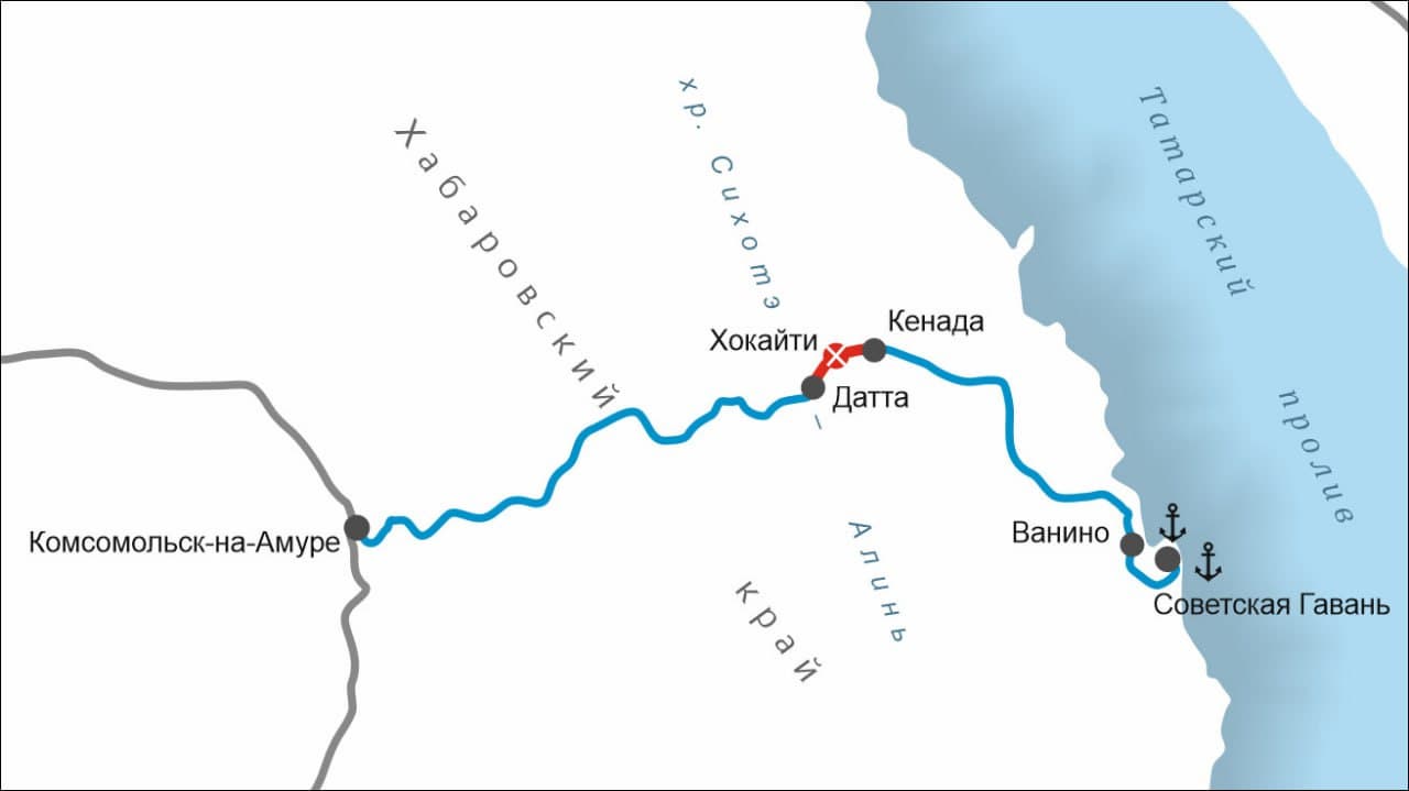 El desarrollo de la infraestructura se dividió en dos etapas. Primero, se construyó una inserción de doble vía entre el apartadero de Jokaity y la estación Kenada en el Krai de Jabárovsk. Así pudimos inmediatamente dejar pasar más trenes.
