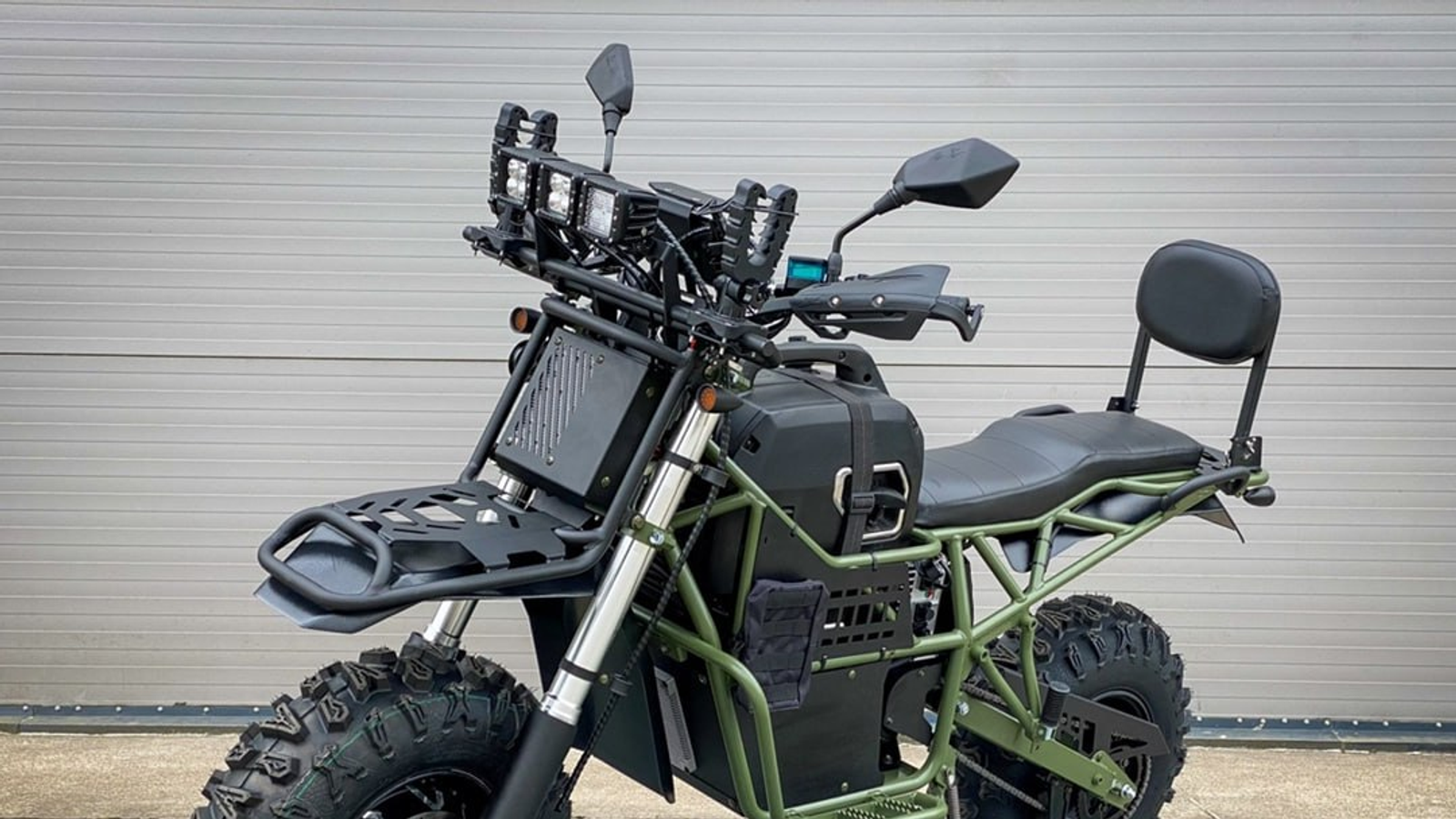 El vehículo todoterreno, equipado con una rueda de motor delantera, desarrolla una potencia total de 7 kW y un par de 220 N·m. Su diseño de tracción total (2x2) se complementa con un generador de gasolina que proporciona energía sobre la marcha, lo que permite clasificarlo como híbrido.