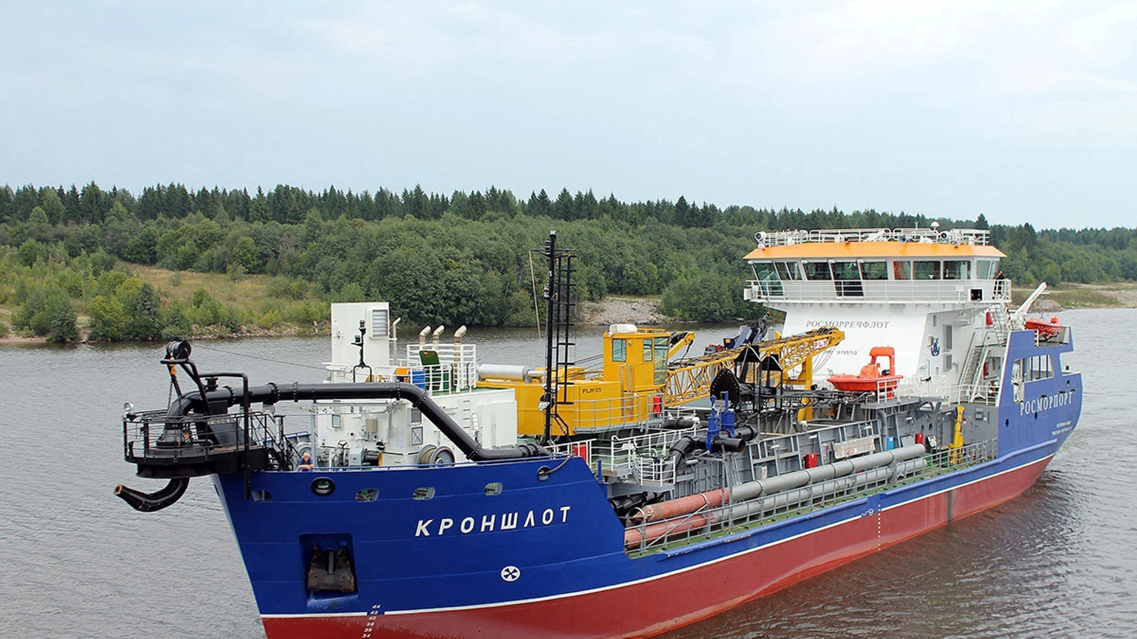 El buque autopropulsado de dragado y autodescarga "Kronslot" forma parte de la flotilla de la filial de Majachkalá de FSUE "Rosmorport". Este buque de tres cubiertas está equipado con compartimentos de máquinas de popa y proa, así como con una superestructura de popa. En el buque se instalaron dos motores con una potencia total de 1492 kW, que lo impulsan mediante dos hélices de cuatro palas de paso regulable con un diámetro de 2,2 metros.