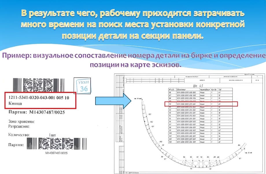 En la empresa se automatizó la búsqueda de piezas. Ahora los ensambladores-remachadores de la producción de ensamblaje de unidades de tecnología de aviación civil ya no necesitan buscar manualmente los lugares de montaje en el mapa de bocetos.