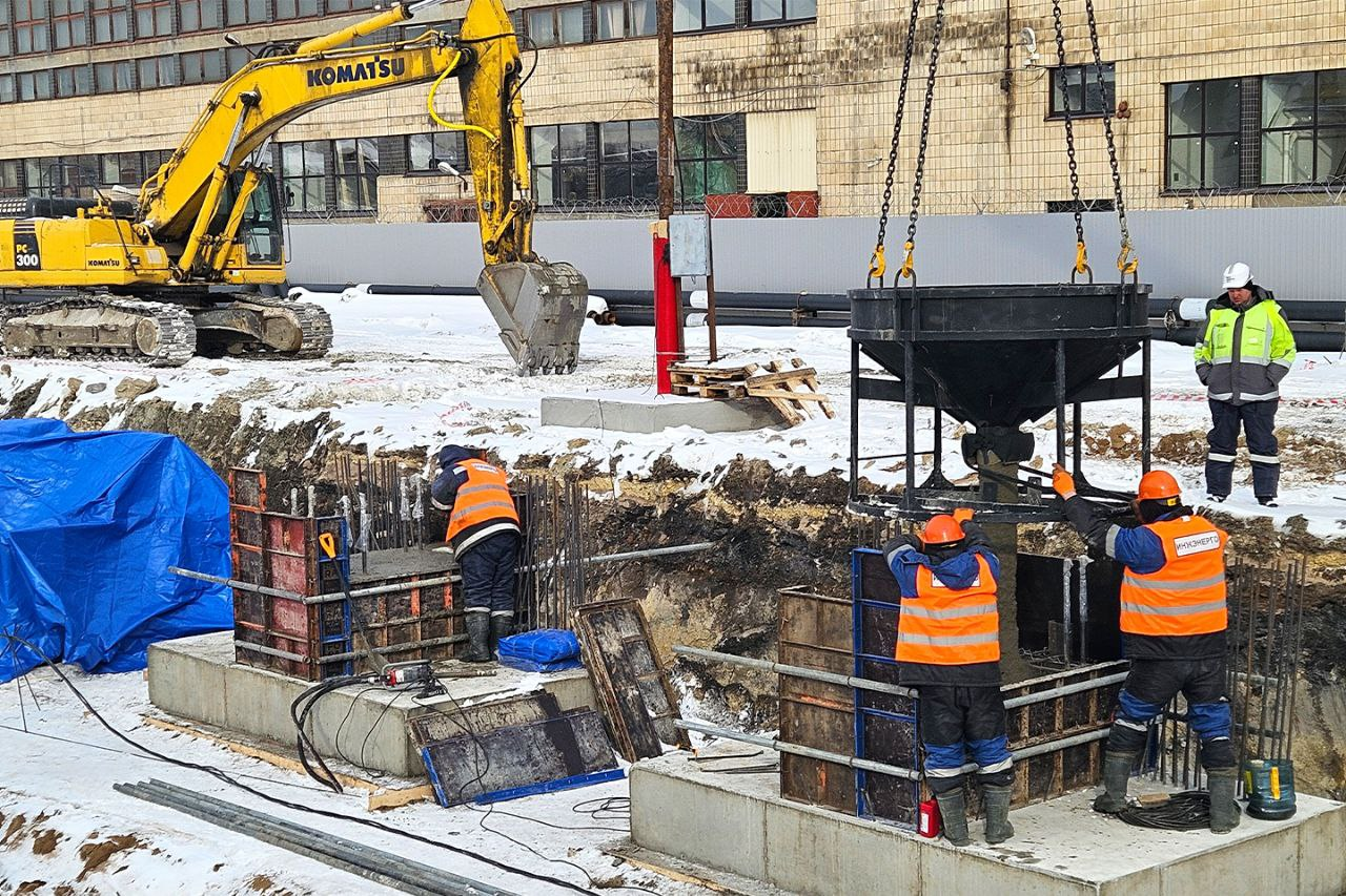 La base está completamente lista: se han instalado los 549 pilotes. Se está trabajando activamente en la construcción de los encepados de las columnas: se han hormigonado 35 de las 105 estructuras. Paralelamente, se ha completado el 82 % de la excavación de la zanja y el traslado de las redes de ingeniería fuera del área de construcción. Diariamente, 110 personas trabajan en el sitio y se utilizan 27 unidades de equipo.