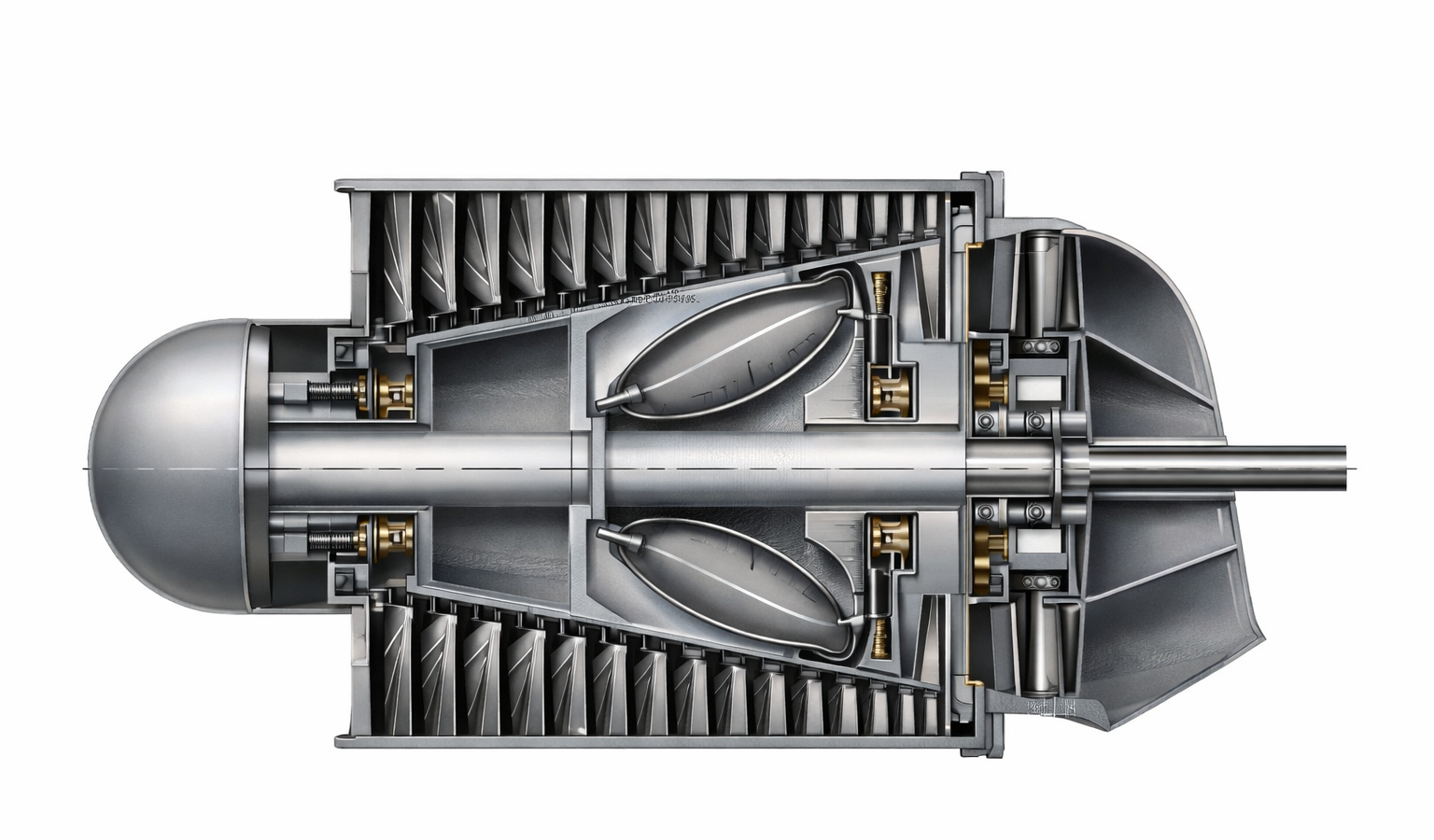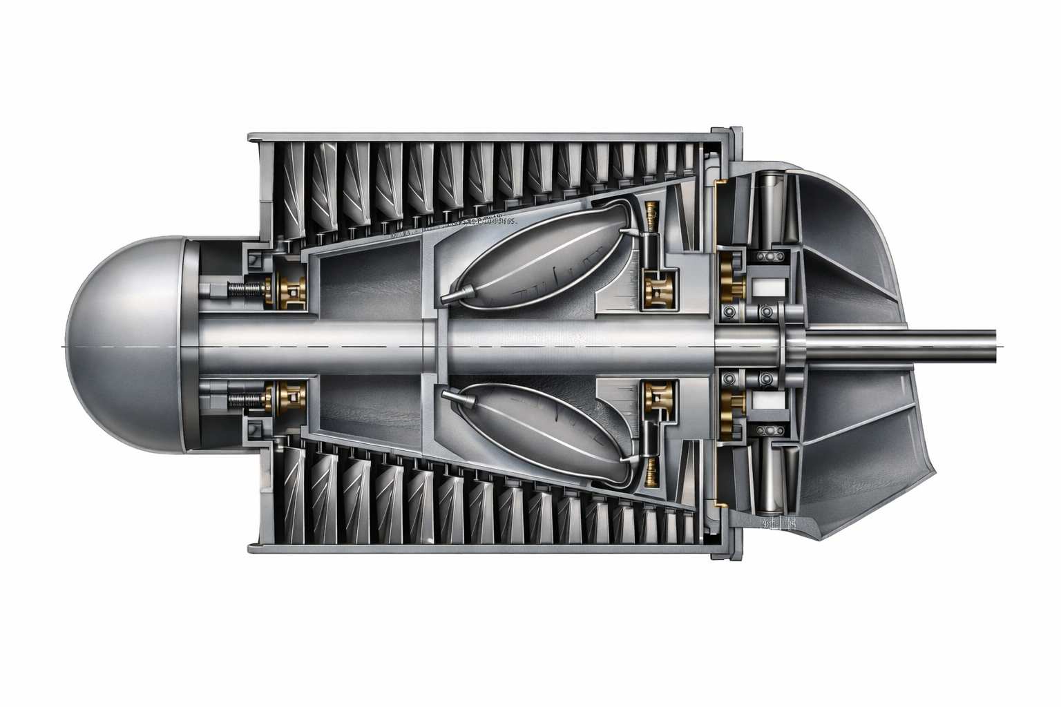 Se propuso colocar las paletas del compresor fuera del tambor y las de la turbina dentro. Esta disposición reduce el número de nodos, simplifica el montaje y reduce los requisitos de sincronización de los elementos.