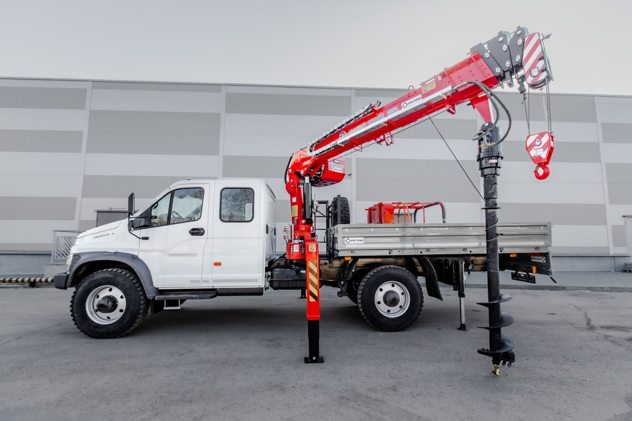 La grúa se extiende hasta 12,5 metros. A corta distancia, la pluma levanta 3,5 toneladas, y en la extensión máxima, 350 kilogramos. El equipo de perforación funciona en un radio de hasta 6 metros. Estas características hacen que la máquina sea útil para montar soportes y perforar pozos en lugares de difícil acceso. La técnica está lista para funcionar en condiciones severas sin preparación adicional.