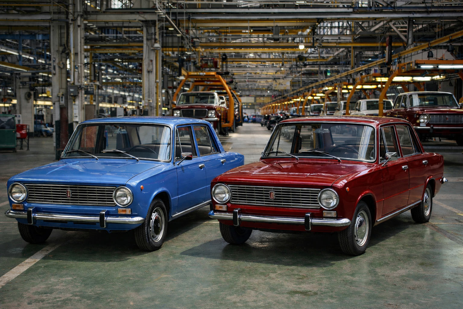 El 19 de abril de 1970 cayó en domingo, pero se declaró día laborable especial. Ese día se ensamblaron los primeros seis automóviles: dos azules y cuatro cereza.