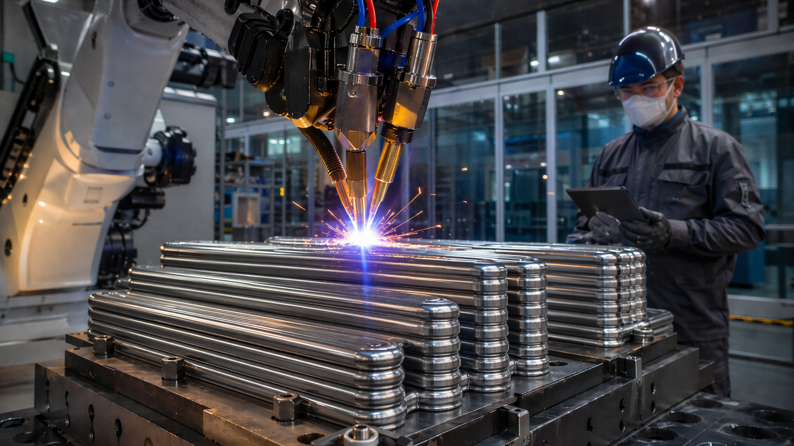 La tecnologia se desarrolla en el marco de la fabricacion aditiva, en particular del metodo de arco (WAAM). Uno de los elementos clave es la doble alimentacion de alambre, que permite crear estructuras multicomponente complejas.