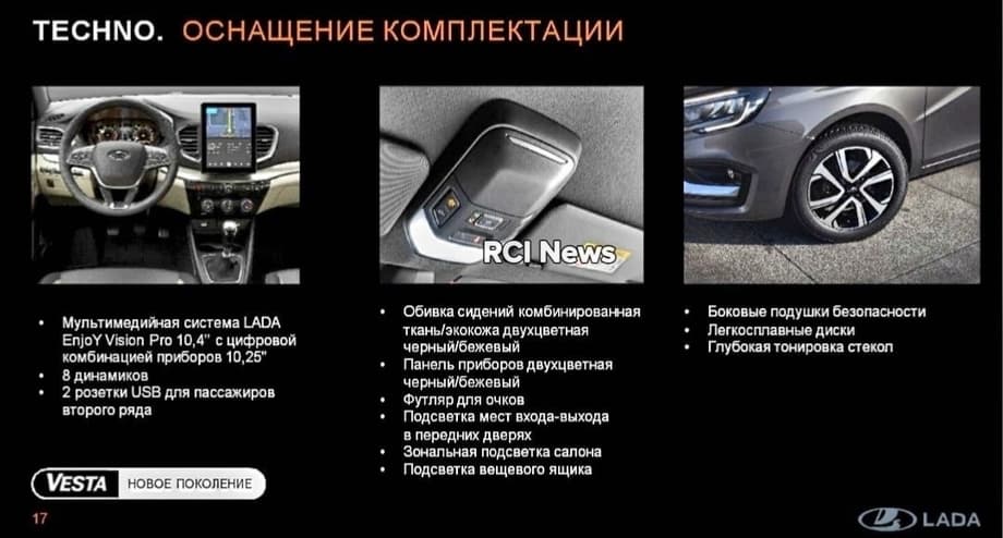 VK-паблик RCI News слил фото слайдов официальной презентации Lada Vesta NG в топовой версии Techno. Ожидается, что производство ее стартует только к концу года, но это не мешает оценить особенности автомобиля уже прямо сейчас.