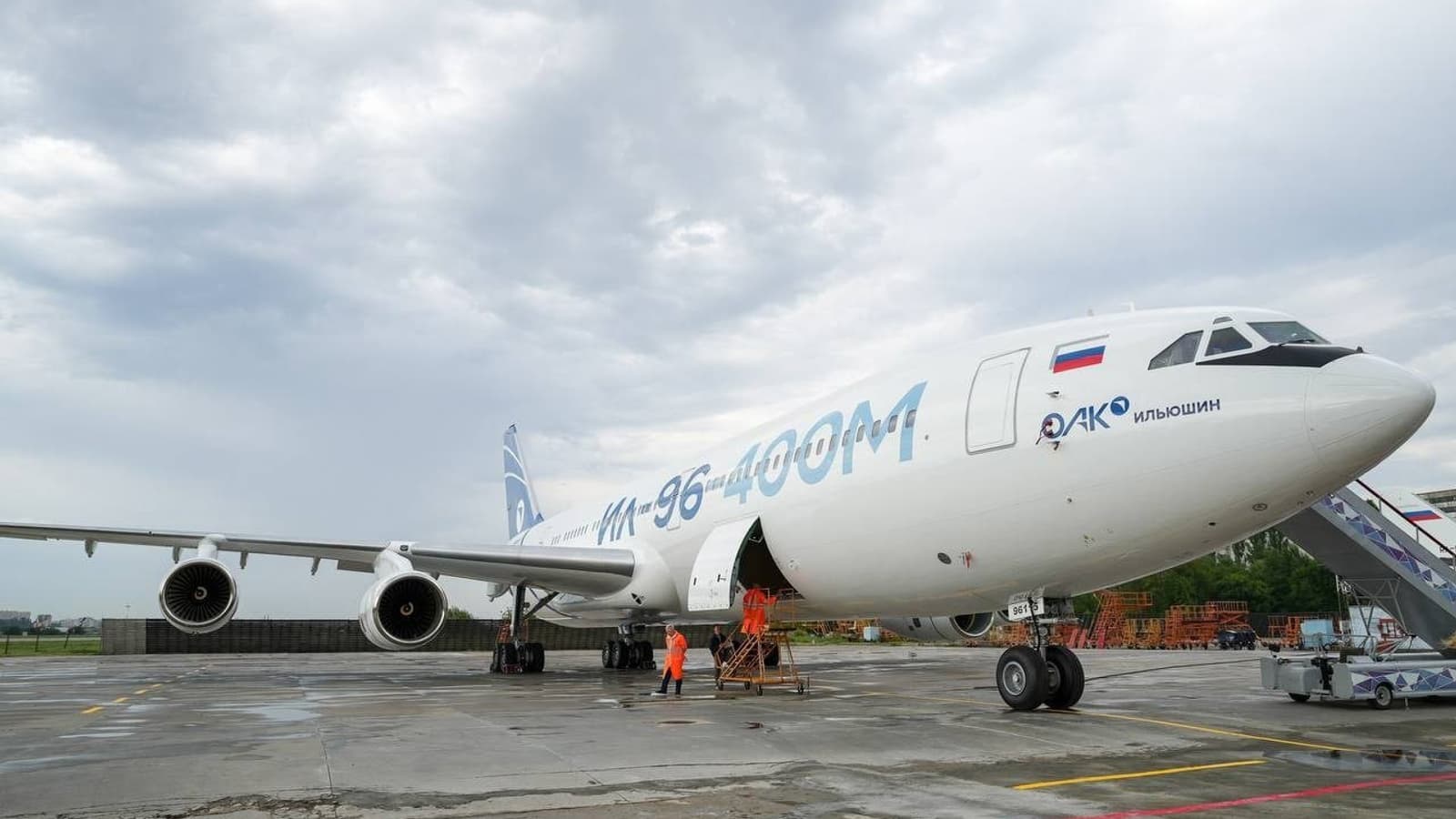 В Сети появились фото опытного дальнемагистрального пассажирского самолета Ил-96-400М. Это глубоко модернизированная версия Ил-96-300, которая выделяется в первую очередь удлиненным на 9,35 м фюзеляжем. На данный момент авиалайнер готовится к первому полету на площадке воронежского предприятия ВАСО.