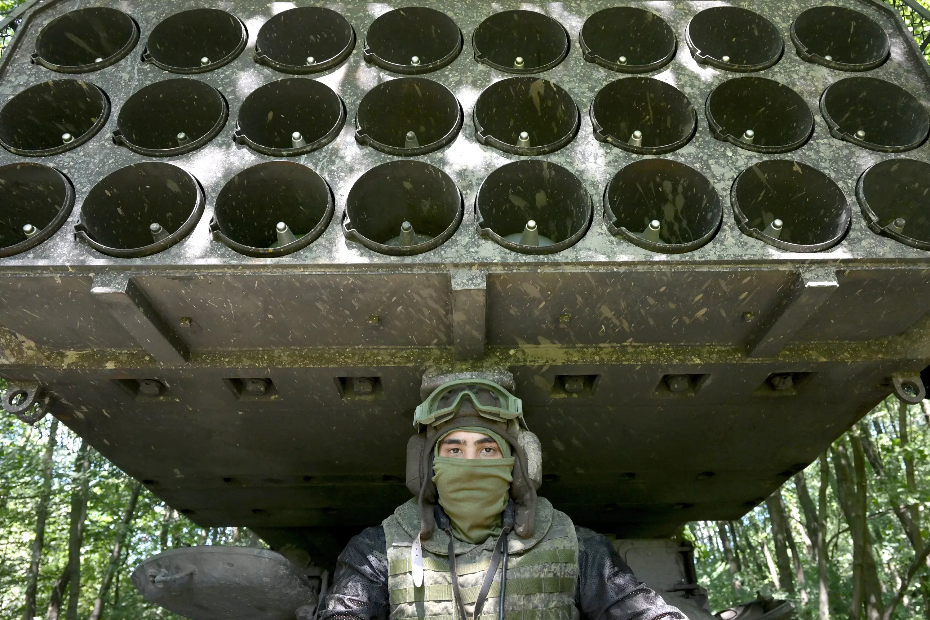 «Солнцепек» использует неуправляемые реактивные снаряды калибра 220 мм. В пакете 24 термобарических снаряда, они способны укрыть площадь до 40 000 кв.м. Дальность стрельбы – до 6 км.