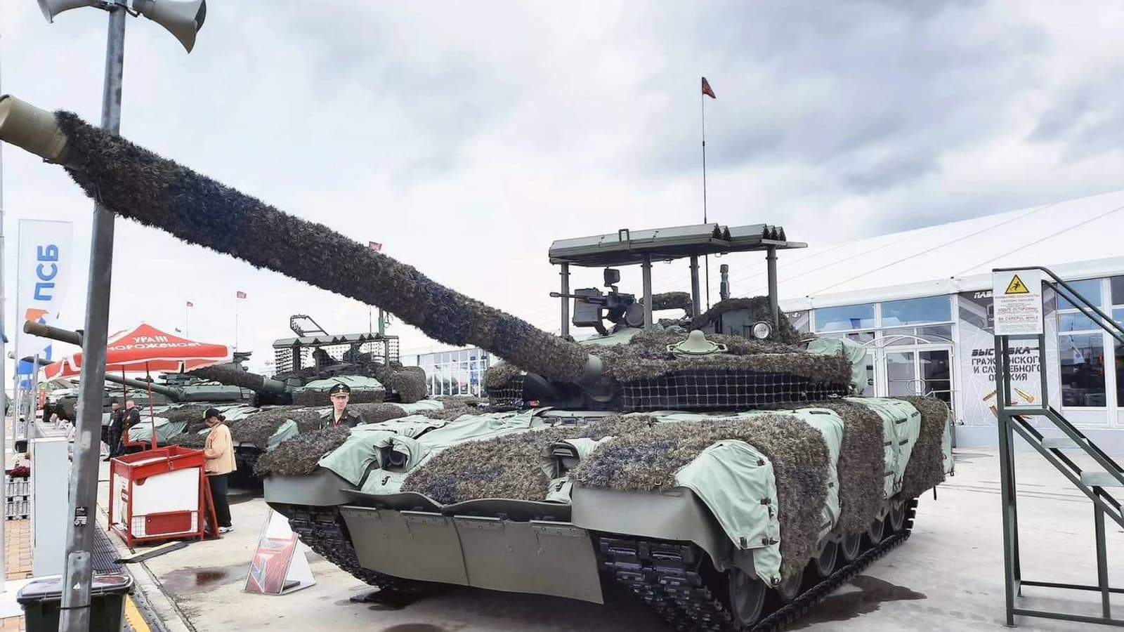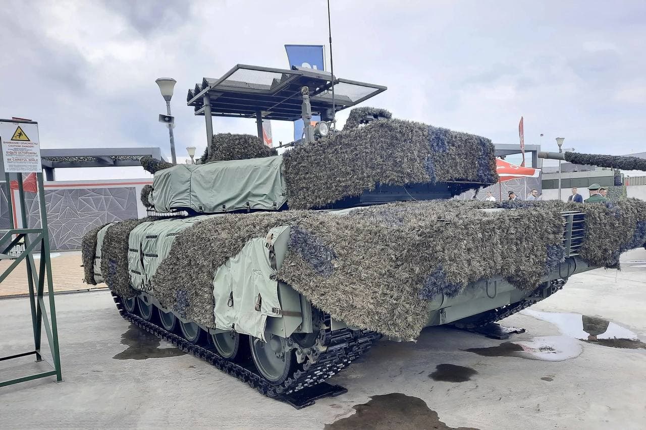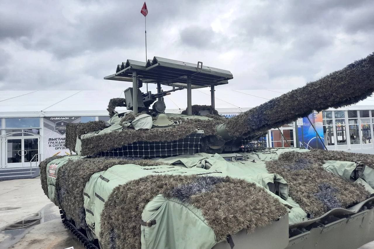 На форуме «Армия-2023» показали интересный экземпляр танка Т-80БВМ образца 2022 года. В плане технической части ничего нового, но есть новые наружные элементы. Это «комплекс средств снижения заметности «Накидка» и промышленно изготовленный защитный козырек».