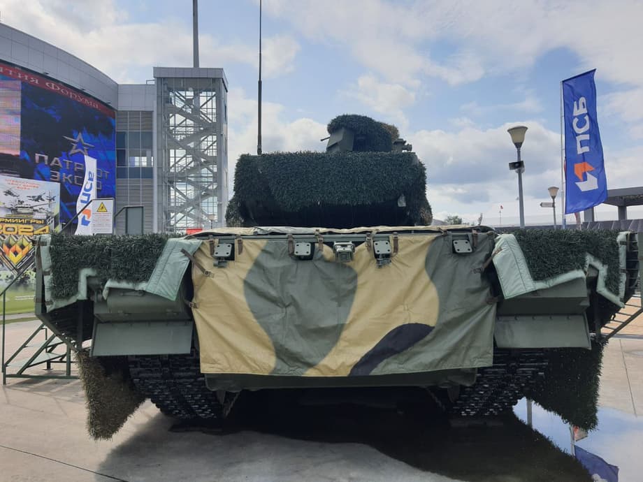 Машина получила специальную накидку, снижающую не только вероятность обнаружения танка противником, но и усложняющую наведение высокоточных средств поражения, таких, например, как противотанковые управляемые ракеты третьего поколения.